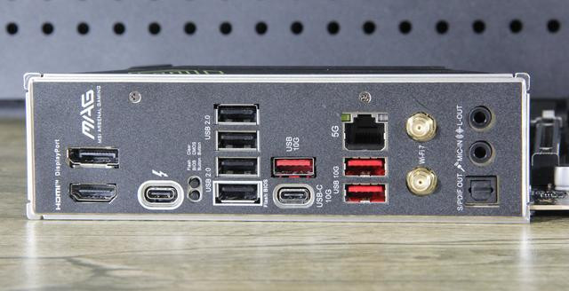 在网络连接方面,这款主板集成了Wi-Fi7无线网卡,支持蓝牙5.4技术,提供了更快更稳定的网络连接体验。有线网络则由一个5Gbps的LAN端口负责,保证了低延迟的游戏体验和高效的数据传输速率。