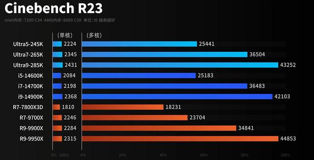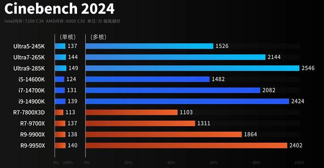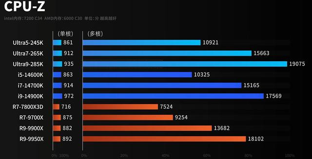 这表明尽管Ultra7 265K在单核性能上稍强,但在多核性能方面却又稍逊,尤其是在处理复杂的多线程任务时能够提供更强大的计算能力。